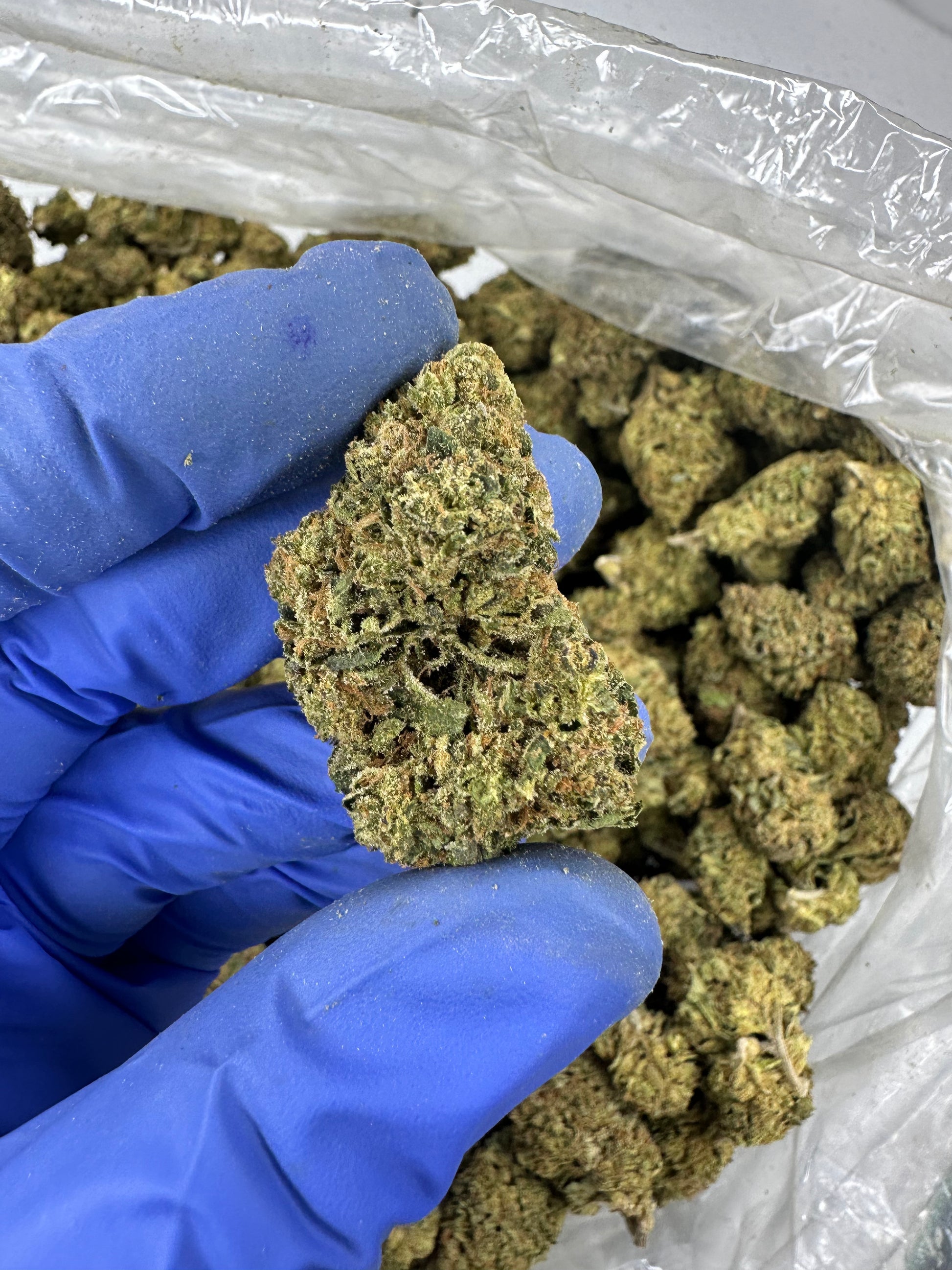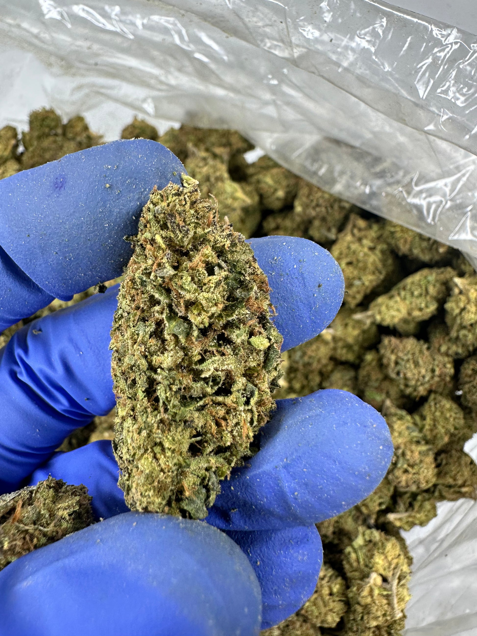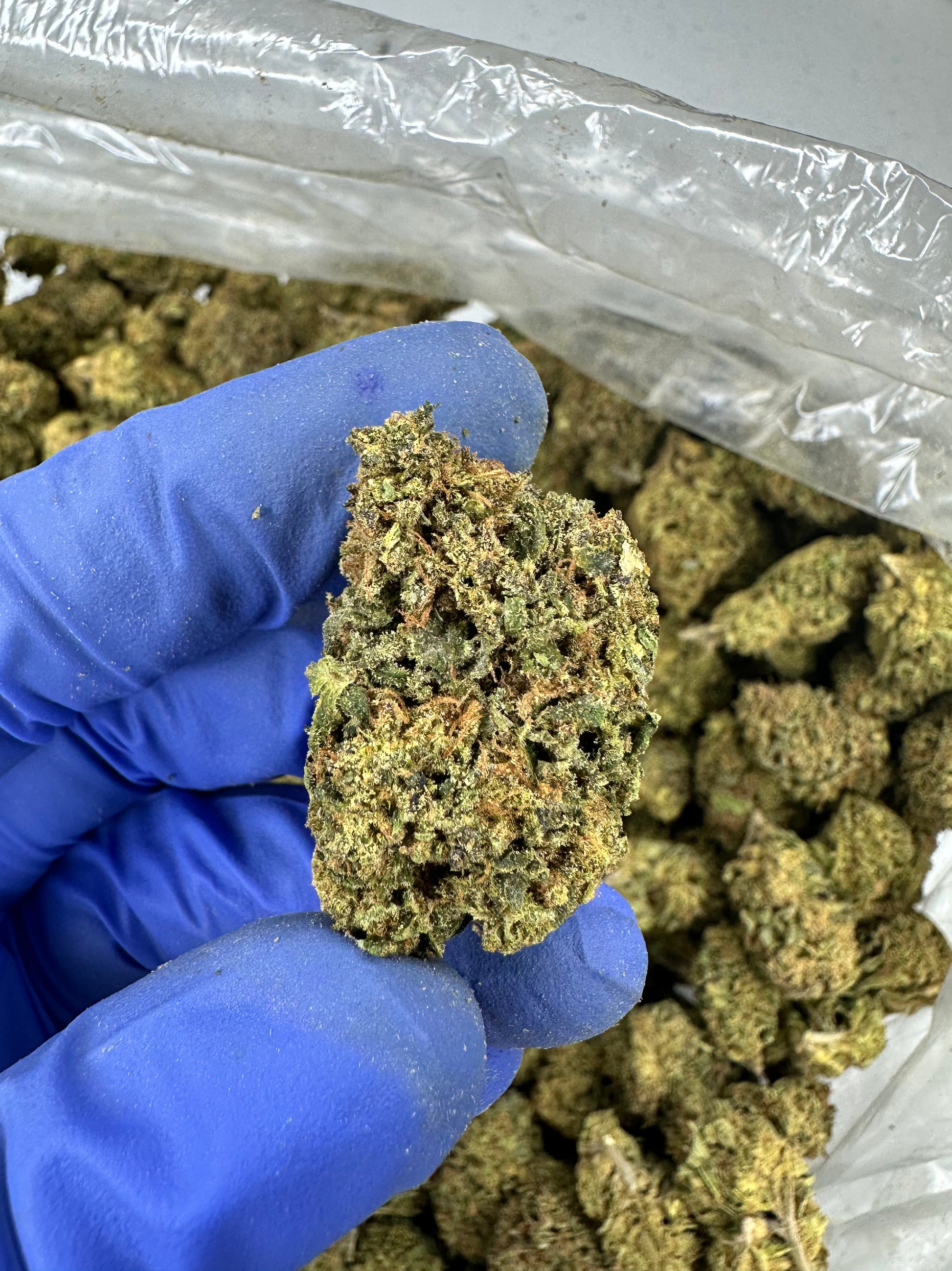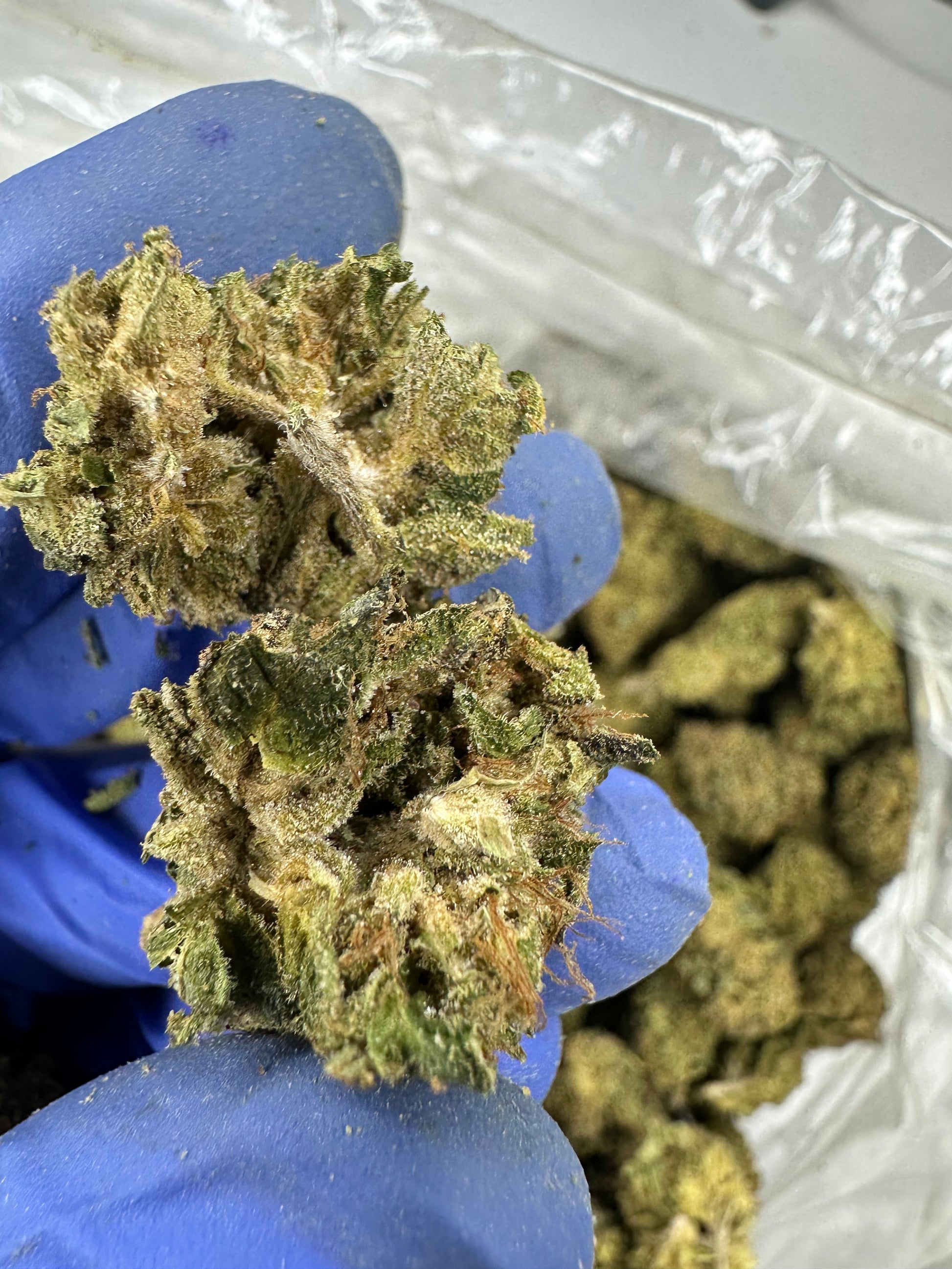 Appearance: Animal Cake buds are typically dense and chunky, displaying a beautiful mix of vibrant green, purple, and blue hues. These colorful flowers are often accented by fiery orange pistils and generously coated in a thick layer of frosty white trichomes, giving them a sparkling, sugar-coated appearance.