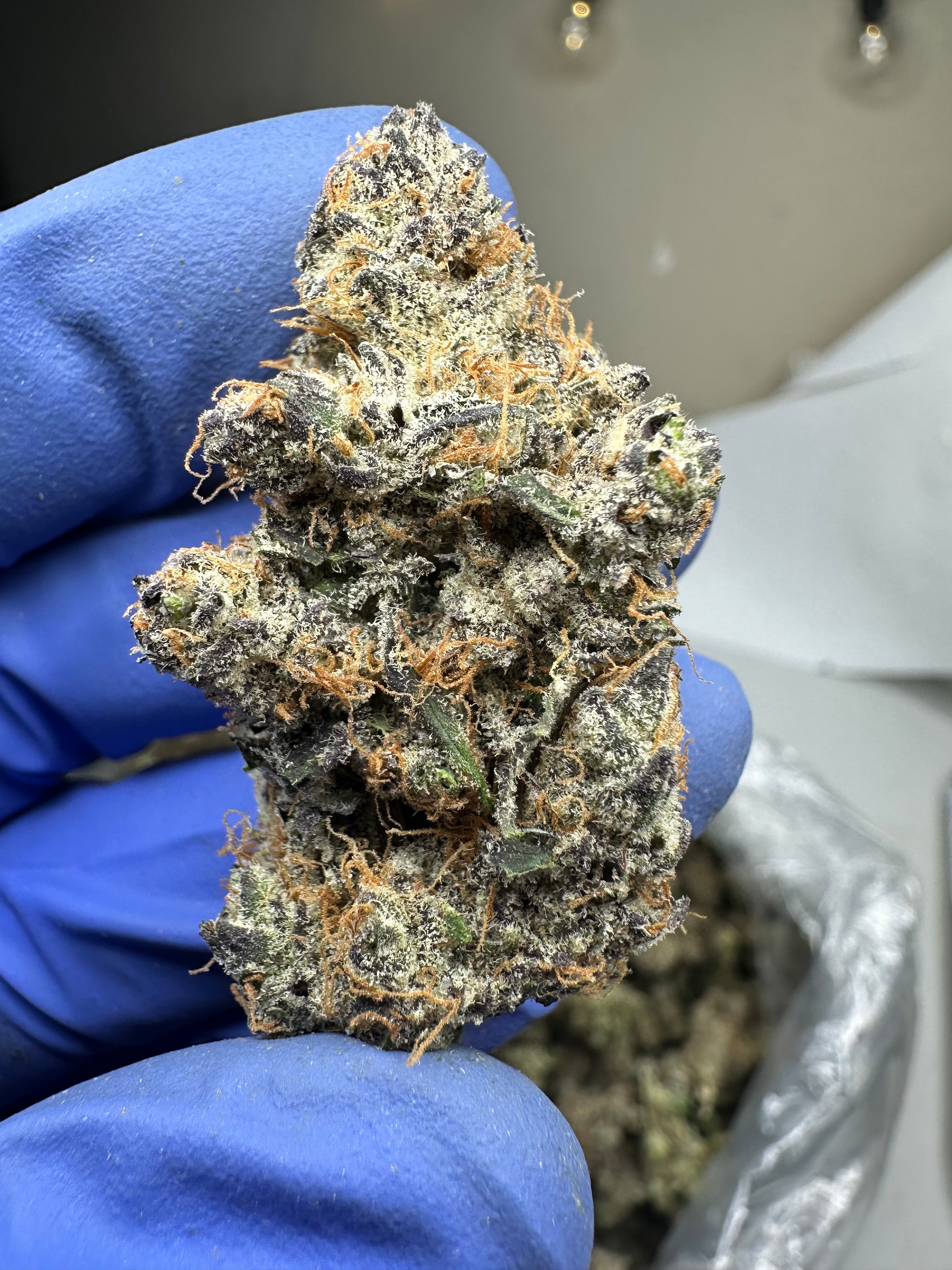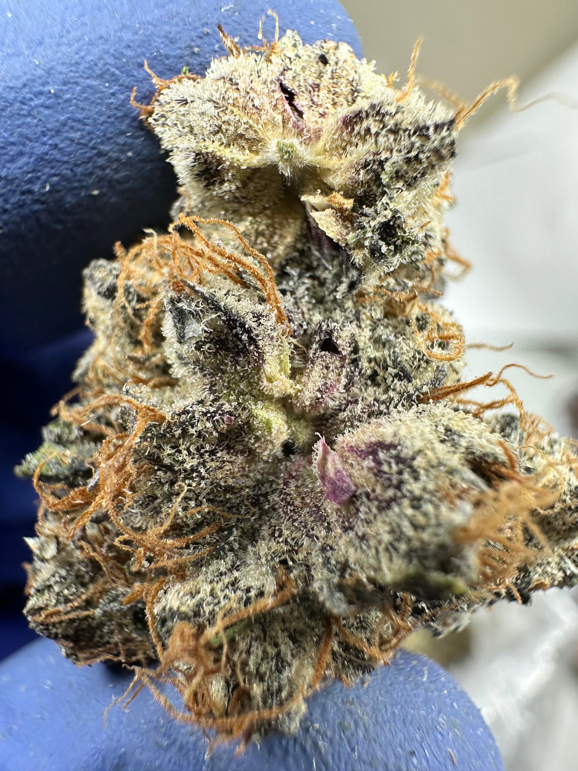 Visuals: The buds are a feast for the eyes, often displaying deep olive-green and profound purple hues, sometimes appearing nearly black.