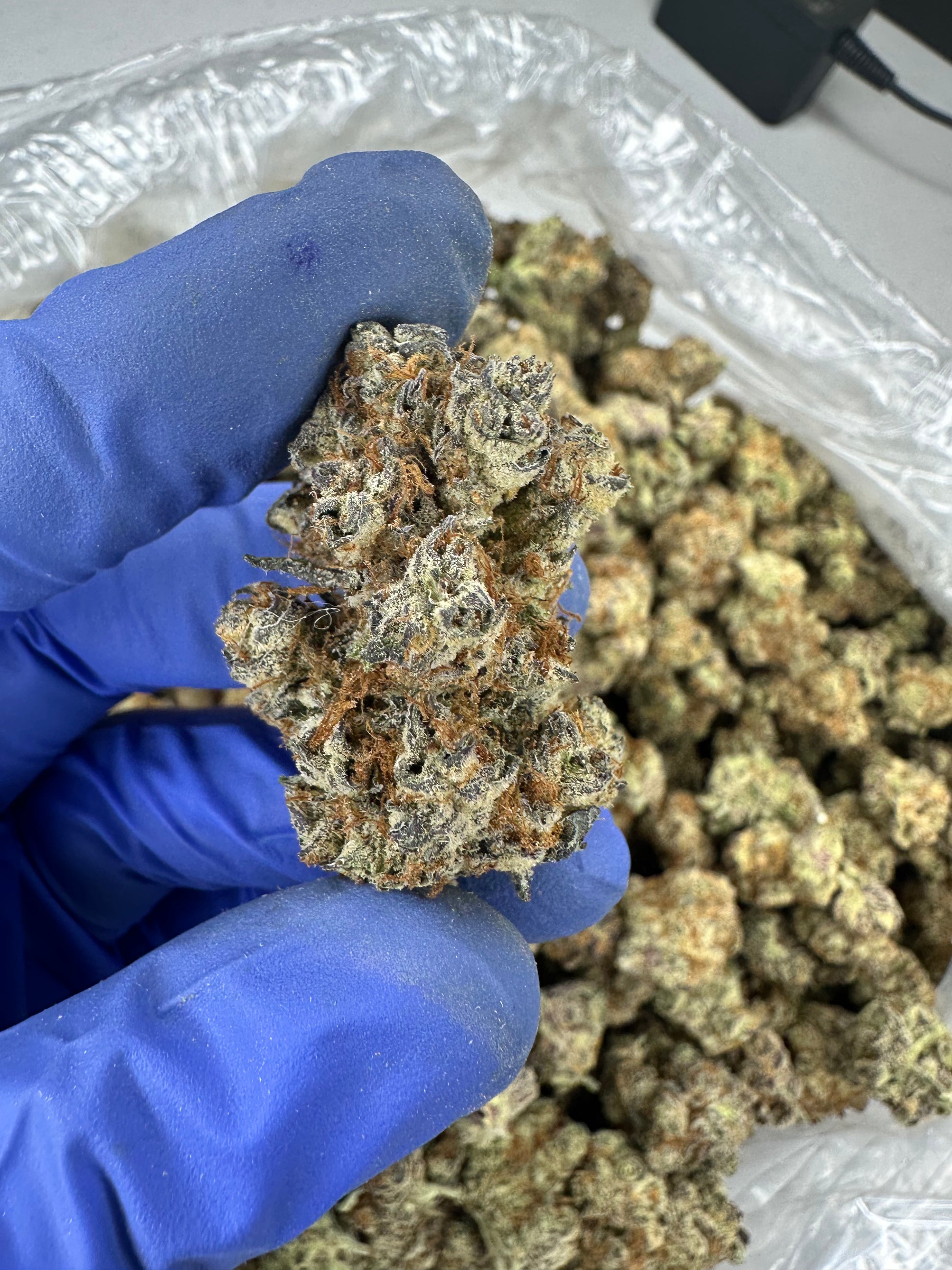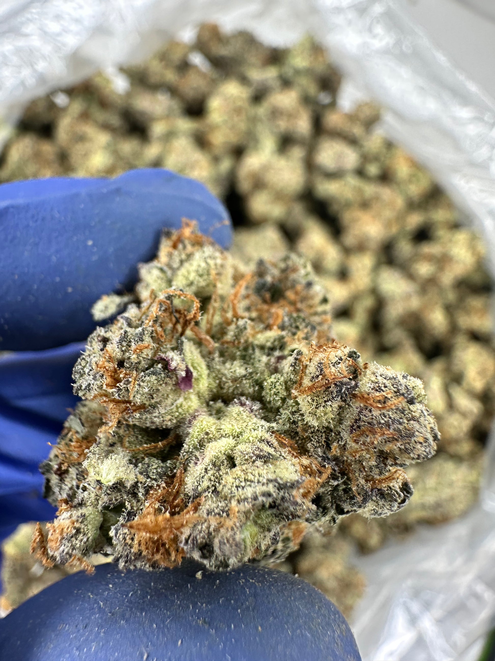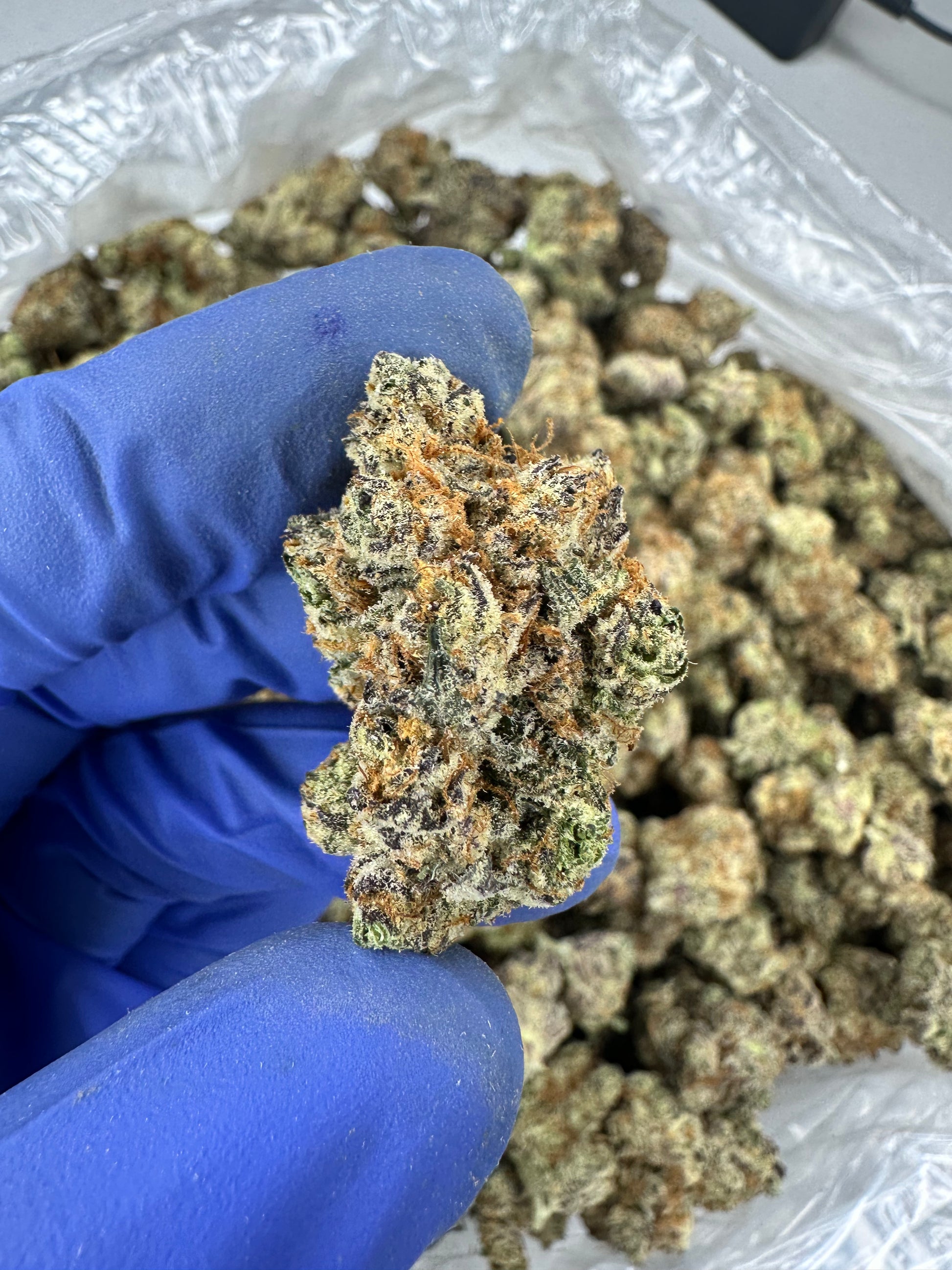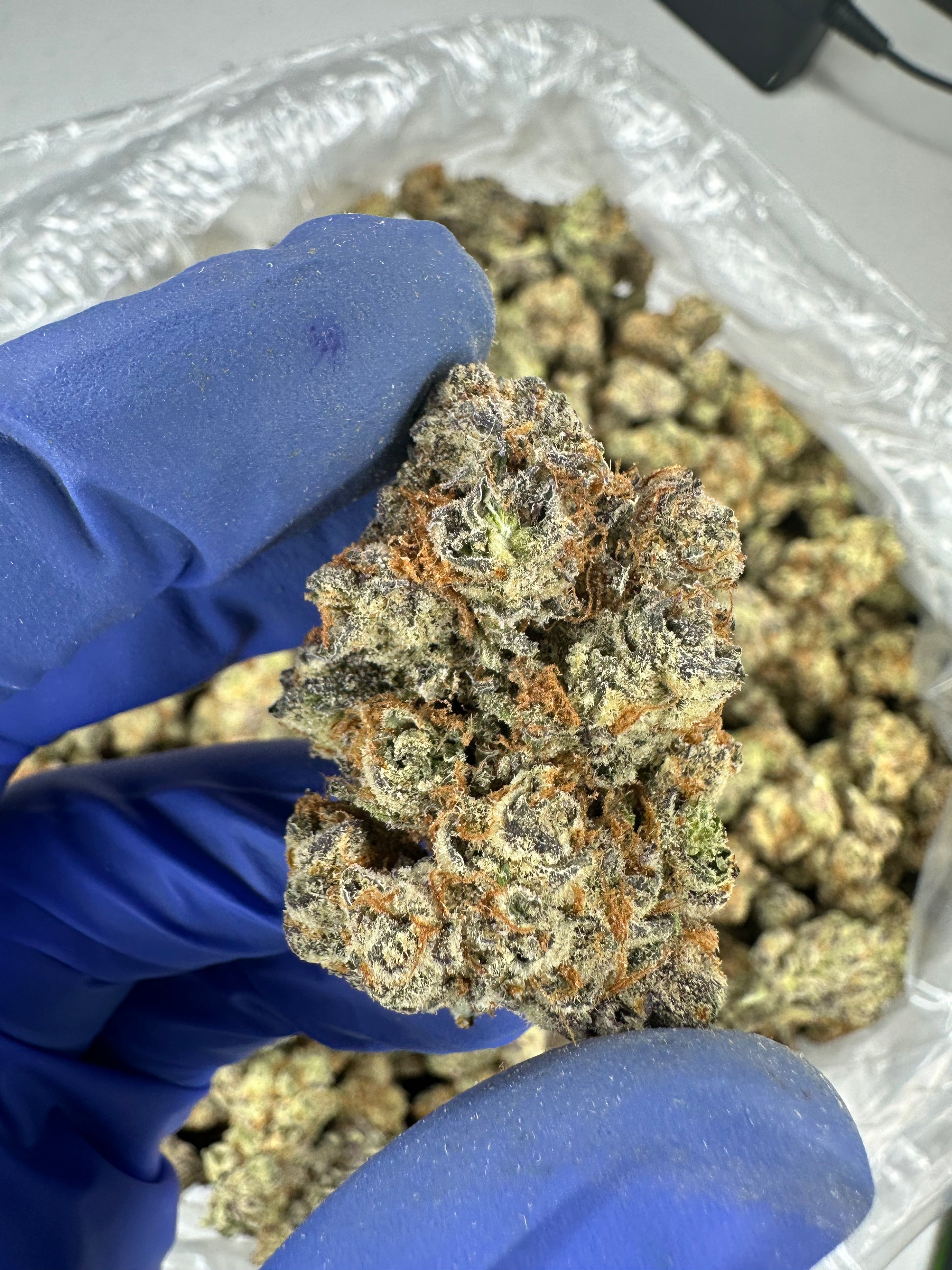 Appearance: Buds of Modified Runtz are dense and chunky, displaying a striking mix of colors inherited from its parentage. You can expect vibrant shades of green and deep purple, contrasted by fiery orange pistils. A thick, frosty layer of shimmering trichomes covers the buds, giving them a sticky texture and a sugar-coated appearance.