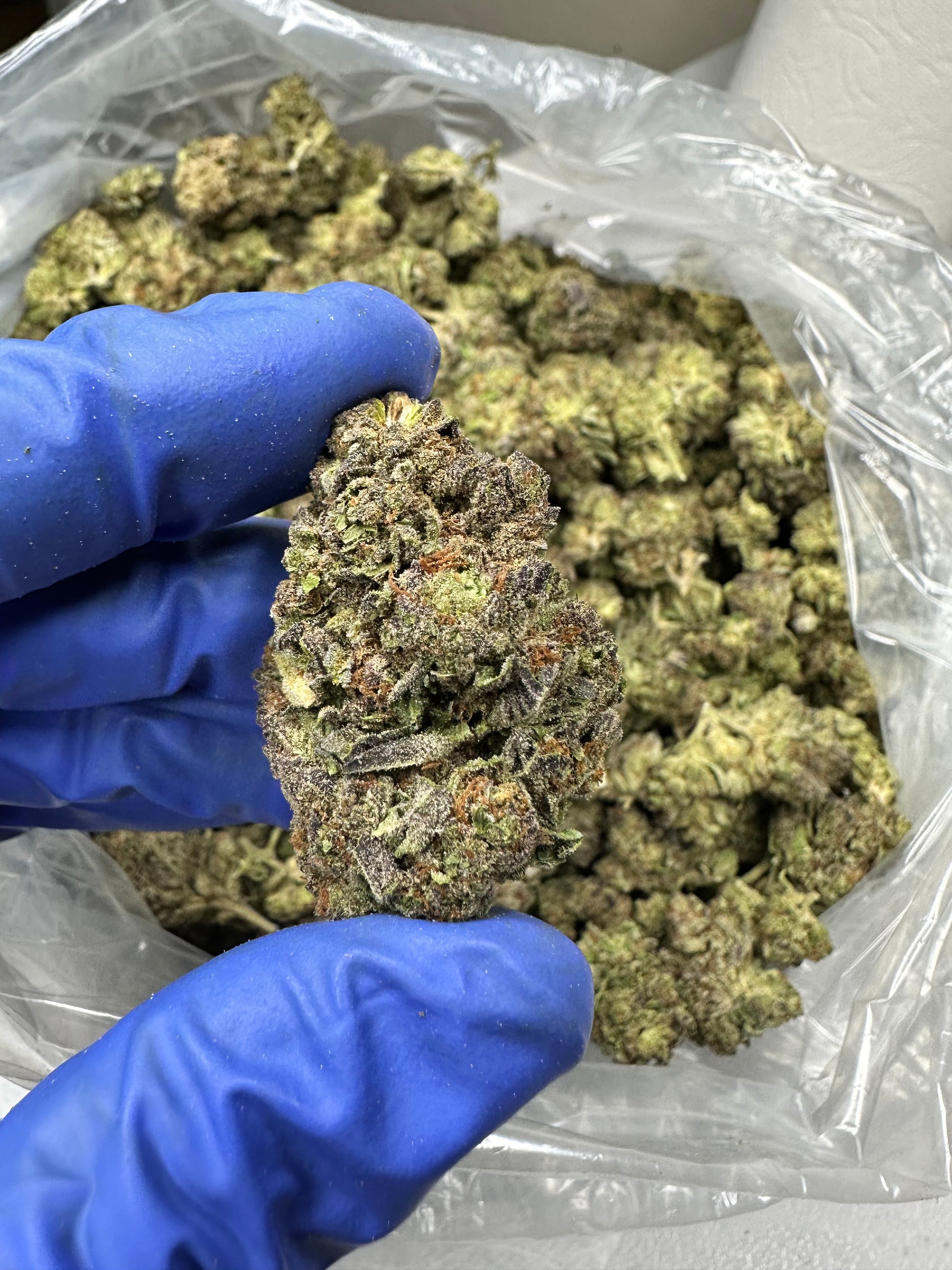 - Appearance: The buds are typically dense and chunky, displaying a range of vibrant green hues with deep purple undertones and bright orange pistils. A generous coating of frosty white trichomes gives the flower a glistening, high-quality appearance.
