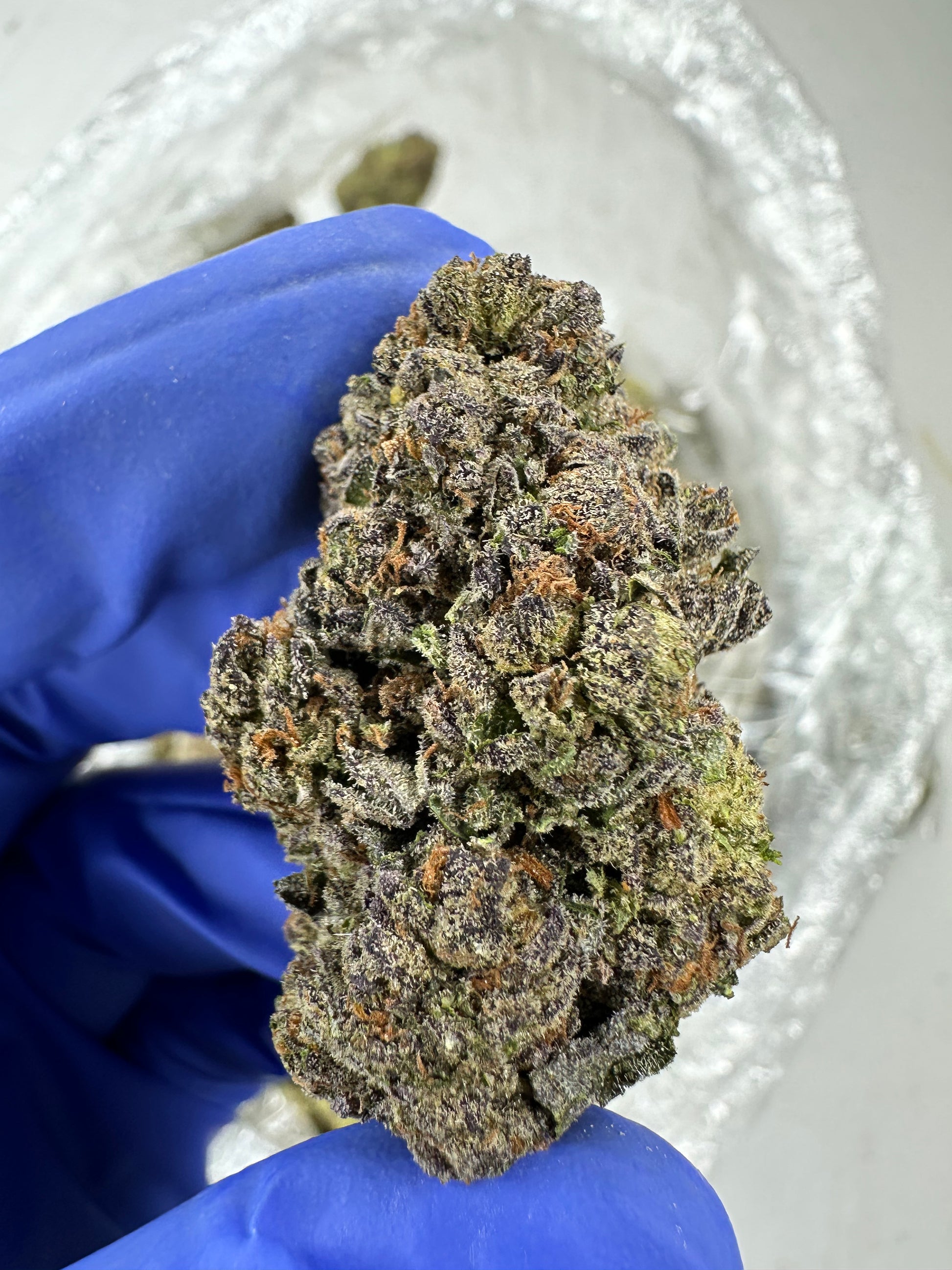 - Some reviewers on Weedmaps describe the flowers as having "deep purple streaks" and "white ash" when smoked.